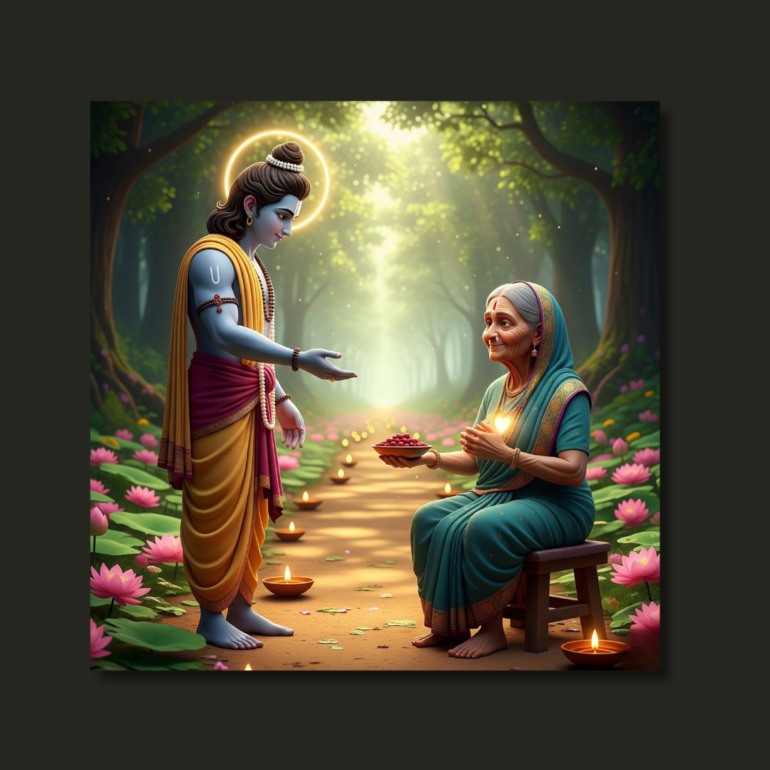 Shabari, filled with divine joy and love, had already unknowingly practiced these paths through her devotion. Lord Ram confirmed her liberation and blessed her forever.